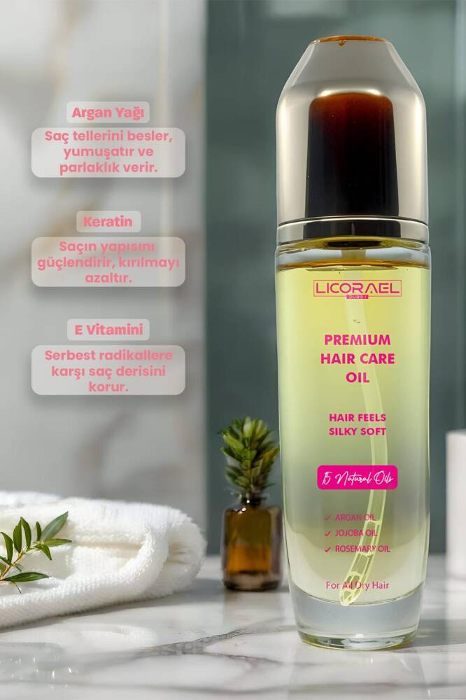 TR - Bitkisel yağlar ve doğal özlerle formüle edilen bu saç bakım yağı, saç derisini besleyerek saç tellerinin güçlenmesine ve doğal parlaklık kazanmasına yardımcı olur. Hafif yapılı ve saç diplerini yormayan formülü sayesinde saçta yağlı his bırakmadan kolayca emilir. Hint yağı, argan yağı ve jojoba yağı gibi besleyici sabit yağlar saç telini kökten uca beslerken,fındık ve çörek otu yağları saçın güçlenmesine ve yıpranmalara karşı korunmasına katkı sağlar. Biberiye yağı ve ısırgan ekstresi azaltır ve saçların daha dolgun ve hacimli görünmesini sağlar.