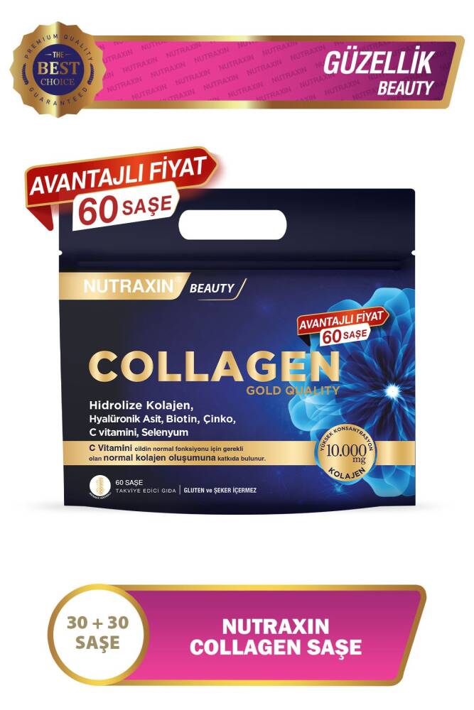 Nutraxin Collagen 60 Saşe 10.000 Mg Tip 1 Tip 3 Ananas Aromalı Avantajlı Çanta Set 60 Günlük Kullanım